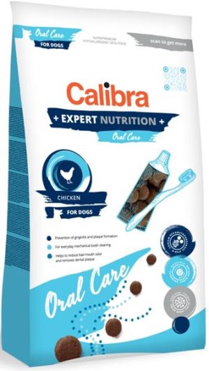 Calibra Dog Expert Nutrition Oral Care sú hypoalergénne granule so špecifickým tvarom a štruktúrou, ktoré umožňujú prirodzene pravidelné mechanické čistenie zubov. Je to kompletné krmivo pre dospelé psy, ktoré pomáha redukovať vznik zubného povlaku, jeho mineralizáciu, teda ukladanie zubného kameňa. Zároveň pôsobí preventívne ohľadom zápalu ďasien a redukuje zápach z papule zvieraťa.