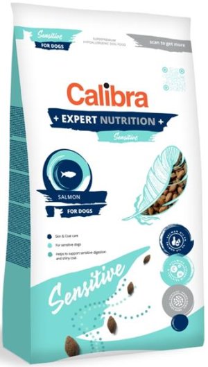 Calibra Dog Expert Nutrition Sensitive sú hypoalergénne granule pre citlivé psy vyznačujúce sa vysokou stráviteľnosťou a chutnosťou. Receptúra je založená na proteínoch z lososa s prídavkom lososového oleja a ryže. Jedná sa o kompletné krmivo, ktoré je určené psom so sklonmi k alergiám, s citlivým trávením a kožnými problémami. Jeho zloženie podporuje optimálne zažívanie a stará sa o kožu a žiarivú srsť psa.