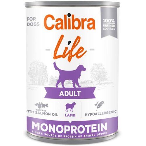 Calibra Dog Life Adult Lamb - receptúra konzervy s jahňacím je kompletným krmivom, ktoré je určené pre dospelých psov.