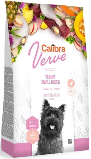 Kompletné granulované krmivo s čerstvým kuracím mäsom bez obilnín pre dospelých psov nad 7 rokov malých plemien s hmotnosťou 1-10 kg. Krmivo s 30% čerstvého kuracieho mäsa a kvalitným kačacím proteínom je adekvátnou výživou pre staršieho psa, ktorá zodpovedá najvyšším požiadavkám na prirodzené stravovanie v súlade s fyziologickými potrebami. Čerstvé mäso v receptúre je vysoko výživným zdrojom bielkovín, ktorý sa vyznačuje atraktívnou chuťou a je vhodné aj na citlivé zažívanie. Táto bezobilninová receptúra je skvele stráviteľná, obsahuje kvalitné zdroje proteínu zo 70% živočíšneho pôvodu, adekvátne množstvo sacharidov a vlákniny, je teda energeticky starostlivo vyvážená. Hlavné výhody Calibra Dog Senior Small Chicken & Duck TRIPLE ACTIVE FORMULA - unikátna kombinácia vybraných funkčných aditív.