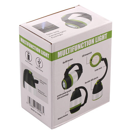 Mať pri sebe silný zdroj svetla je výhodné nielen pri kempovaní alebo rybárčení, ale prakticky všade, kde vás môže zastihnúť tma. Kempingová lampa Camp Light je skvelým riešením pre tieto prípady. Lampa má niekoľko možností využitia - môže vám poslúžiť ako osvetlenie pri kempovaní, ako prenosné svietidlo alebo ako stolná lampa, ktorá má možnosť naklopenia a otočnú hlavicu o 180 °. Zdrojom svetla sú LED diódy, ktoré majú 3 možnosti nastavenia svietenia, kedy prepínať môžete jedným tlačidlom. Tlmené svetlo, ktoré je vhodné ako nočné osvetlenie, silné svetlo určené na svietenie ako stolná lampa a svietidlo, ktoré dosvieti do vzdialenosti 100 – 200 m. Kempingová lampa tiež slúži ako zdroj núdzového prúdu – power banka, ktorá má štandardný USB výstup, ktorým môžete nabiť napríklad svoj mobilný telefón. Konštrukcia svietidla je vyrobená z odolného ABS plastu. Lampa vydrží svietiť 5 – 8 hodín, v závislosti od zvoleného režimu svietenia. Napája sa pomocou zabudovanej lítiovej batérie, ktorá sa dobíja pomocou USB kábla (je súčasťou balenia). Výhodou lampy Camp Light je jej nízka hmotnosť (240 g), vďaka ktorej ju ľahko zbalíte do batohu alebo zavesíte do stanu. Ďalšou výhodou je odolnosť lampy voči dažďu. Parametre: Materiál: odolný plast ABS Váha: 240 g Funkcia: prenosné svietidlo, stolná lampa, kempingové osvetlenie, power banka Napájanie: zabudovaná lítiová batéria 18650 Výdrž batérie: 5 – 8 h Napätie: 3.7 V – 4.2 V Nabíjanie: univerzálne USB rozhranie Dosvit : 100 – 200 m Vodeodolnosť: IPX45 (odolné voči dažďu) El. výkon: 5 W Svietivosť: 350