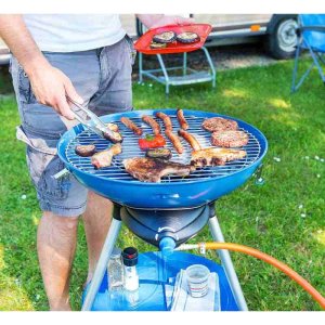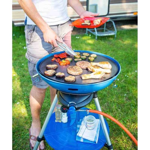 Varič Party Grill® 600 je nevyhnutným spoločníkom pri kempovaní s nekonečnými možnosťami použitia! Tento kompaktný, prenosný varič ponúka širokú škálu možností varenia vďaka rôznym povrchom a príslušenstvu, vrátane klasického variča na varenie na panvici, ďalej ho môžete využiť ako gril s roštom aj tálom, s použitím veka môžete varič použiť ako rúru. Dokonca môžete strážiť teplotu vďaka zabudovanému teplomeru. Všetky časti variča Party Grill® 600 sa zložia dovnútra nádoby a umiestnia do polyesterového obalu, ktorý je súčasťou balenia. Vďaka odnímateľným nohám a uzamykateľnému veku je možné ľahko transportovať a skladovať. Zapaľovanie Piezo. Zdroj energie je PB fľaša. Použite kedykoľvek a kdekoľvek, využite všetky možnosti grilu i variča v jednom.