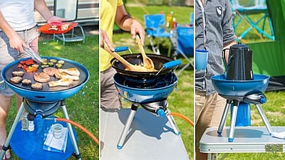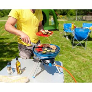 Dokonale funkčný prenosný viacúčelový gril a varič v jednom. Vhodné predovšetkým pre dlhodobé kempovanie alebo do karavanu ale aj na dovolenku, turistiku, na chatu, chalupu, terasu aj záhradu. Gril je možné kompletne vrátane odnímateľných nožičiek zložiť do seba + zabaliť do prenosnej tašky a spotrebič tak pohodlne premiestniť úplne kamkoľvek. Party gril 400 Stove obsahuje chrómovaný rošt aj obojstranný tál s nepriľnavou teflónovou úpravou a tiež smaltované veko s rukoväťami, ktoré možno využiť ako panvicu WOK. Po sňatí roštu alebo tála je možné na varič postaviť kempingový riad alebo kanvicu na vodu, možno si teda pripraviť prakticky akékoľvek jedlo alebo nápoj na akomkoľvek mieste. Zdrojom energie je plynová fľaša, ktorá sa jednoducho pripojí certifikovanou pripojovacou hadicou a to za pár sekúnd.
