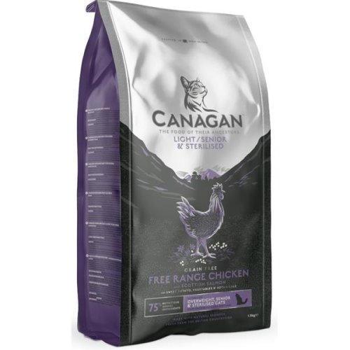 Canagan Cat LIGHT / SENIOR / STERILISED with Chicken & Salmon – receptúra bez obilnín, ktorá je pripravená špeciálne pre mačky s nadváhou alebo so sklonmi k nadváhe, pre staršie mačky a/alebo pre kastrované mačky. Čerstvé kuracie mäso z voľne chovaných kurčiat a čerstvé mäso z lososa používa Canagan iba v kvalite pre ľudskú spotrebu. Živočíšne suroviny sú perfektne doplnené mnohými druhmi zeleniny a bylín. Krmivá Canagan predstavujú kvalitu bez kompromisov: