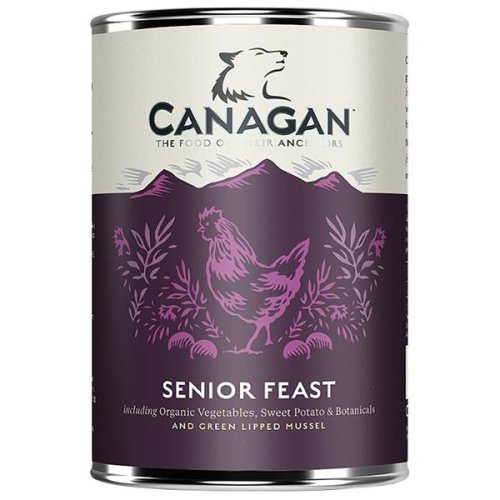 Šťavnatá mäsová konzerva Canagan Senior Feast. Hostina pre psích seniorov v receptúre bez obilnín - kompletné krmivo pre starších dospelých psov. CANAGAN konzervy pre psov predstavujú kompletné a vyvážené krmivá, vyrábané bez obilnín, s bio zeleninou aj ovocím a čerstvým mäsom či rybami. Všetky suroviny sú dovážané čerstvé každý deň as láskou spracovávané do jedinečných receptúr pre našich štvornohých priateľov. PRÍRODNÁ STAROSTLIVOSŤ O KĹBY - zelené mušle (Slávka zelenoústá) sú prirodzeným zdrojom glukosamínu. Lososový olej poskytuje množstvo esenciálnych omega 3 mastných kyselín. NAJLEPŠIE KÚSKY MÄSA - vďaka krehkým kúskom mäsa a rýb sú krmivá CANAGAN tak vynikajúce aj zdraviu prospešné. Zloženie: čerstvo pripravené kuracie mäso (40 %), čerstvo pripravené morčacie mäso (20 %), batáty (sladké zemiaky), bio mrkva, bio hrach, petržlen, brusnice, bio brokolica, minerálne látky, slávka zelená, lososový olej, morské riasy , pestrec, bio jablká, bio špenát, glukosamín (1000 mg/kg), chondroitín (1000 mg/kg), šípky, žihľava, nechtík, brest, aníz, mäta, rozmarín. Nutričné doplnkové látky (na 1 kg): vitamín D3 (3a671) 200 MJ, zinok (síran zinočnatý monohydrát 3b605) 25 mg, mangán (síran mangánatý monohydrát 3b503) 1,4 mg, jód (jodičnan2 vápenatý , meď (síran meďnatý pentahydrát 3b405) 1 mg. Analytické zložky: hrubý proteín 10,2 %, obsah tuku 5,8 %, hrubý popol 2,4 %, hrubá vláknina 0,6 %, vlhkosť 80 %. Starostlivo odstraňujeme všetky kosti a chrupavky z nášho ručne porciovaného mäsa, ale môže sa stať, že nejaké malé kúsky predsa len prekĺznu. Vášmu psovi by to v prírode nevadilo, ale samozrejme sa snažíme, aby sa do konzervy nedostali. Dávkovanie: Odporúčané kŕmne dávky sú iba orientačné, podávané množstvo krmiva je potrebné prispôsobiť veku, aktivite, prostrediu i kondícii vášho psa. Pes musí mať vždy prístup k čistej a čerstvej vode.