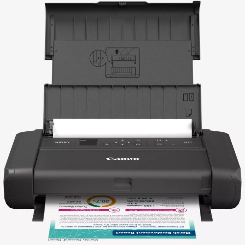 Prenosná atramentová tlačiareň Canon Maxify BX110 pre potrebu tlače kdekoľvek a kedykoľvek. Vďaka kompaktnému dizajnu, nízkej váhe a integrovanej dobíjacej batérii je navrhnutá najmä pre tlač na cestách. Umožní vám pracovať zo sedadla vlaku, na stavbe, z dočasnej kancelárie na hoteli a pod. Tlačiareň Canon Maxify BX110 umožňuje tlač dokumentov v počte až 330 strán na jedného nabitia .