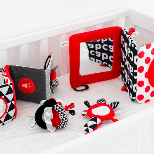 Prečo sú senzorické hračky také dôležité? Zrak dieťaťa je po narodení najmenej rozvinutým zmyslom. Tma, ktorá prevláda v maternici, nedovoľuje, aby sa zrak v prenatálnom období plne rozvinul. Po narodení je zrak dieťaťa rozmazaný a hmlistý. Dieťa vidí iba obrysy v rozmedzí 20-30 cm, veľké tvary a prvky z prostredia. Asi po mesiaci začne vidieť farby, spočiatku červené a čierne. Asi za tri mesiace si začne všímať ďalšie výrazné farby. Približne vo veku šiestich mesiacov začína vidieť detaily na obrázkoch a tiež vidí oveľa jasnejšie. V dvanástom mesiaci života je už zrak dieťaťa plne vyvinutý ako u dospelého a stáva sa skvelým nástrojom na objavovanie sveta. Senzorické hračky z novej kolekcie SENSORY tak pomáhajú stimulovať zrak dieťaťa a trénujú schopnosť sústrediť pozornosť už od prvých týždňov života.