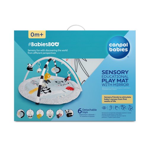 Senzorická hracia deka so zrkadielkom BabiesBoo umožňuje vášmu dieťaťu objavovať svet z rôznych uhlov pohľadu. Rôzne textúry materiálov, kontrastné farby a jemné zvuky sú skvelou zábavou pre rozvíjajúce sa zmysly bábätka od prvých okamihov života. naťahujú sa na ne, pomáha rozvíjať motoriku, posilňuje svaly a precvičuje manuálne zručnosti.