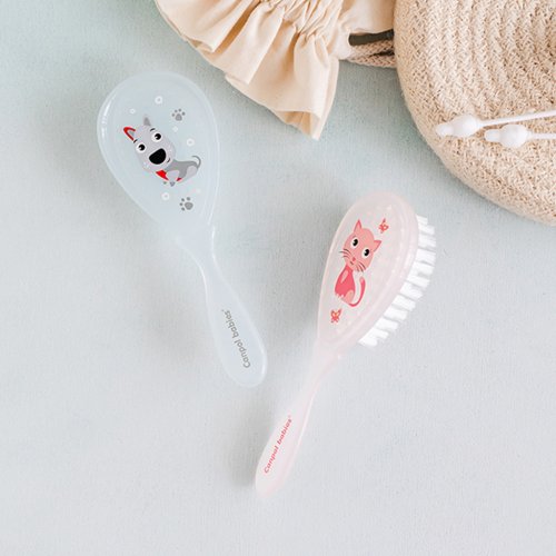 Bezpečná a jemná detská kefa na vlasy z umelých štetín.