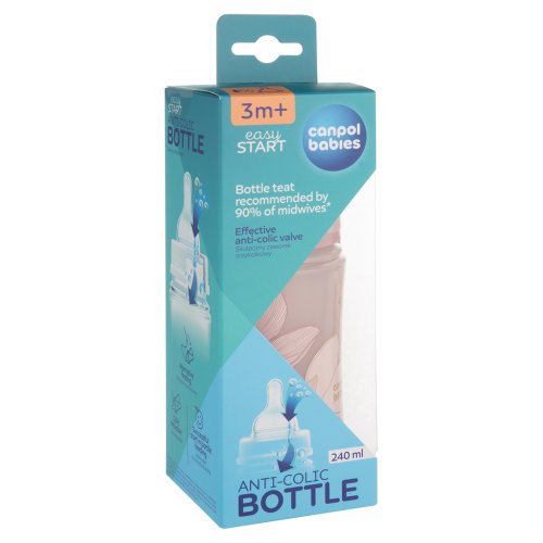 Antikoliková fľaštička Canpol babies EasyStart bola vytvorená s ohľadom na spokojné bruško vášho bábätka. Špeciálny antikolikový ventil zabraňuje hromadeniu vzduchových bublín v mlieku, čaji alebo kaši, čo v kombinácii so správne zvolenou polohou kŕmenia umožňuje účinne eliminovať brušný diskomfort vášho dieťaťa súvisiaci s kolikou a plynatosťou.