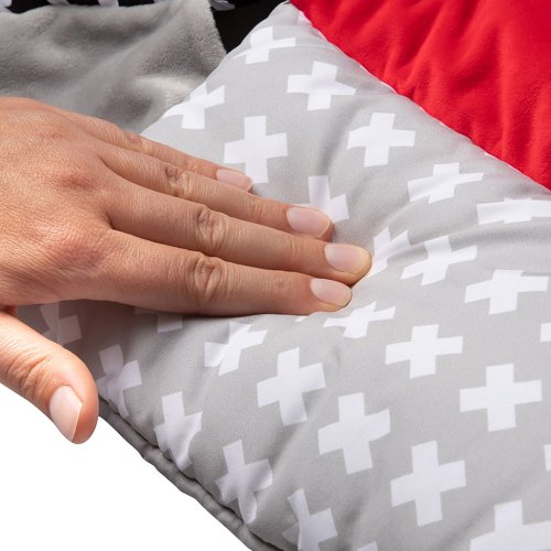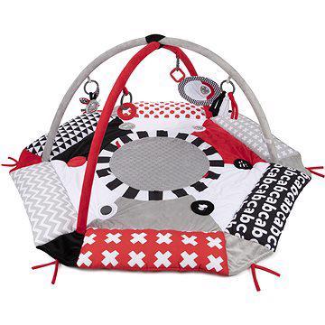 Kontrastná hracia deka z kolekcie SENSORY je ideálnym pomocníkom na prvý rok života bábätka. Disponuje interaktívnymi prvkami, ktoré zaujmú dieťa na naozaj dlhú dobu, podnecujú jeho aktivitu a prispievajú k rozvoju jeho zmyslov. Edukatívna deka je ideálna už pre novorodencov, pretože hneď po narodení vidí iba kontrasty. Je extra silná a našuchorená, vďaka čomu izoluje dieťa od chladnej podlahy. Hracia deka potom vyrastá spolu s dieťaťom a môže byť použitá ako ohrádka alebo ako klasická hracia podložka s hračkami na hrazdičke. Obsahuje 5 odnímateľných hračiek: hrkálku, hryzátko, zrkadlo, farebnú pentličku a pískací / šuštiaci prvok. Všetky prvky je možné od hrazdičky odopnúť a môžu potom slúžiť samostatne, len tak na hranie alebo na upútanie pozornosti bábätka. S kolekciou SENSORY sú kompatibilné aj ďalšie produkty, napríklad závesná hračka pre detský kočík/sedačku, ktorú je možné ľahko pripevniť k hrazdičke podložky.