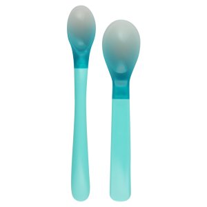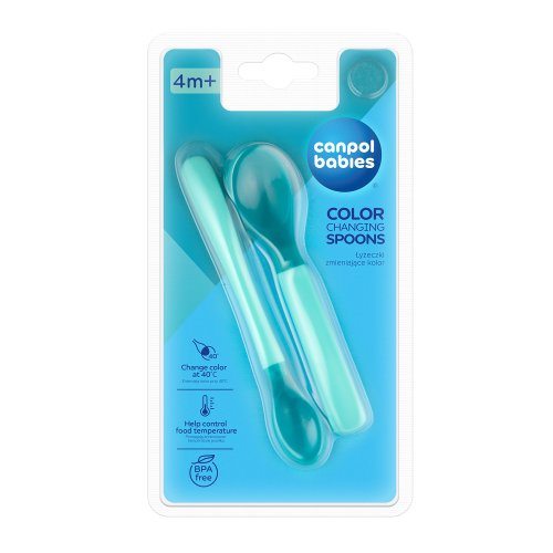 Sada jedinečných detských lyžičiek na kŕmenie je ideálna na rozširovanie jedálnička bábätka. Lyžičky uľahčujú kontrolu teploty podávaného jedla – pri príliš vysokej teplote jedla (cca 40 ° C) zmení farbu na svetlejšiu. Lyžičky sú veľmi praktické. Lyžička s dlhšou rukoväťou je vhodná pre obdobie, keď začínate rozširovať jedálniček bábätka, uľahčuje kŕmenie zo zaváracieho pohára a menšia lyžička bude perfektná na naučenie samostatného kŕmenia.