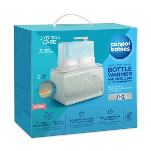 Elektrický ohrievač a sterilizátor fliaš Canpol babies 7v1 s termostatom a lampou je multifunkčné zariadenie, s ktorým je príprava jedla pre vaše dieťa rýchla a jednoduchá. Ponúka 7 rôznych režimov: ohrev mlieka, ohrev príkrmu/poháre, rýchly ohrev (za 2-3 minúty), rozmrazovanie, sterilizácia, udržiavanie teploty a funkcie nočného svetla.