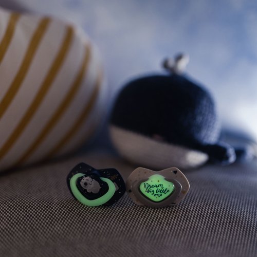 Svietiace prvky v tme – uľahčujú hľadanie cumlíka v noci.