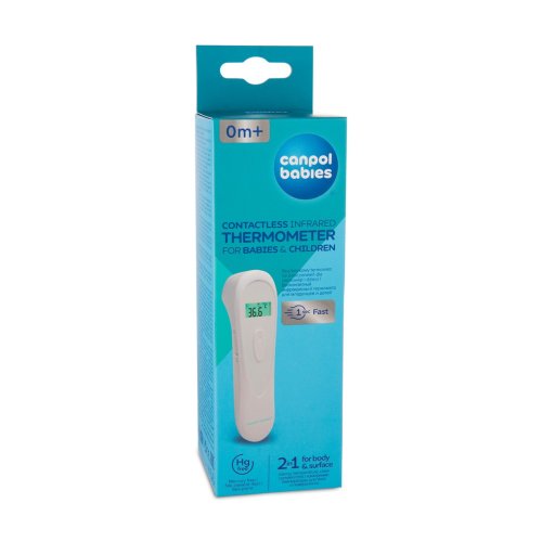 Bezkontaktný infračervený teplomer EasyStart značky Canpol babies zaručuje rýchle a presné meranie teploty kedykoľvek to potrebujete. Na dosiahnutie presných výsledkov stačí jedna sekunda. Zariadenie súčasne interpretuje meranie teploty a signalizuje ho farbou. Ideálne pre najmenšie deti. Umožňuje diskrétne meranie počas spánku a čitateľný podsvietený displej uľahčí používanie teplomera aj v noci. Vďaka vstavanej pamäti môžete ľahko vidieť výsledky posledných 25 meraní.