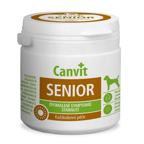 Canvit Senior je ucelený komplex s obsahom všetkých potrebných zložiek pre spomalenie príznakov starnutia u seniorov a starnúcich psov:- Kolagén, vitamín C a omega kyseliny pre extra výživu kĺbov,