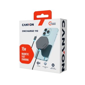 CANYON bezdrôtová magnetická nabíjačka HEXAGON 110, 15W, Qi2 Dark Grey