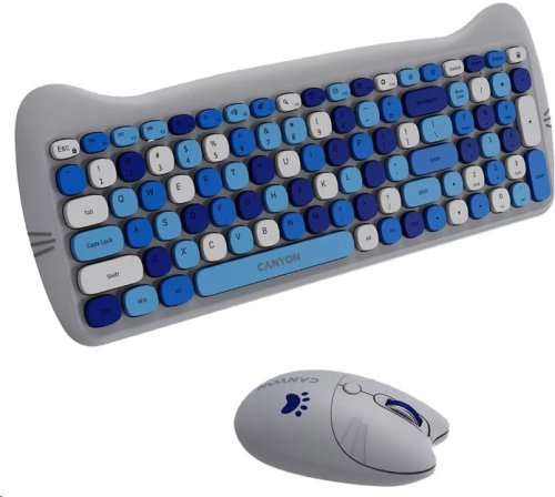 Objavte dokonalú kombináciu funkcií so sadou klávesnice a myši Canyon Kitty Edition. Tento bezdrôtový set s frekvenciou 2,4 GHz je ladený do troch nádherných farebných prevedeniach: čiernej a fialovej, ružovej a bielej a modrej a svetlo šedej, ktoré určite dodá vášmu pracovnému priestoru nádych rozmarnosti. Klávesnica má plnohodnotné rozloženie so 100 klávesmi, vrátane 15 multimediálnych kláves, pre rýchly prístup k vašim obľúbeným funkciám. Táto klávesnica s nožnicovým mechanizmom a spínačmi navrhnutými pre tiché písanie je vyrobená tak, aby vydržala, životnosť je 10 miliónov stlačení klávesov. Jej tenký ergonomický dizajn a matná povrchová úprava poskytujú pohodlie a odolnosť, zatiaľ čo laserové gravírovanie symbolov zaisťuje jej dlhú životnosť. Myš je vybavená štyrmi tichými tlačidlami a nastaviteľným DPI pre presné ovládanie prispôsobené vašim preferenciám. So životnosťou 3 milióny kliknutí bude táto myš bez námahy držať krok s vašimi každodennými úlohami. Vďaka mäkkému dotykovému povrchu a ľahkému telu je radosť ju používať. Set Kitty Edition je napájaný štandardnými batériami AAA a AA a ponúka pohodlie bezdrôtového pripojenia bez zníženia výkonu. Priložené zamatové ochranné puzdro dodáva ďalšiu vrstvu prepracovanosti a ochrany. Táto očarujúca kombinácia s mačacím vzhľadom je určená pre tých, ktorí pri svojich periférnych zariadeniach oceňujú štýl aj kvalitu. Užite si slobodu bezdrôtovej technológie s HSET-W6 Kitty Edition - praktické a hravé