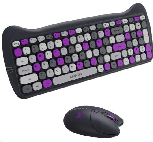 Objavte dokonalú kombináciu funkcií so sadou klávesnice a myši Canyon Kitty Edition. Tento bezdrôtový set s frekvenciou 2,4 GHz je ladený do troch nádherných farebných prevedeniach: čiernej a fialovej, ružovej a bielej a modrej a svetlo šedej, ktoré určite dodá vášmu pracovnému priestoru nádych rozmarnosti. Klávesnica má plnohodnotné rozloženie so 100 klávesmi, vrátane 15 multimediálnych kláves, pre rýchly prístup k vašim obľúbeným funkciám. Táto klávesnica s nožnicovým mechanizmom a spínačmi navrhnutými pre tiché písanie je vyrobená tak, aby vydržala, životnosť je 10 miliónov stlačení klávesov. Jej tenký ergonomický dizajn a matná povrchová úprava poskytujú pohodlie a odolnosť, zatiaľ čo laserové gravírovanie symbolov zaisťuje jej dlhú životnosť. Myš je vybavená štyrmi tichými tlačidlami a nastaviteľným DPI pre presné ovládanie prispôsobené vašim preferenciám. So životnosťou 3 milióny kliknutí bude táto myš bez námahy držať krok s vašimi každodennými úlohami. Vďaka mäkkému dotykovému povrchu a ľahkému telu je radosť ju používať. Set Kitty Edition je napájaný štandardnými batériami AAA a AA a ponúka pohodlie bezdrôtového pripojenia bez zníženia výkonu. Priložené zamatové ochranné puzdro dodáva ďalšiu vrstvu prepracovanosti a ochrany. Táto očarujúca kombinácia s mačacím vzhľadom je určená pre tých, ktorí pri svojich periférnych zariadeniach oceňujú štýl aj kvalitu. Užite si slobodu bezdrôtovej technológie s HSET-W6 Kitty Edition - praktické a hravé