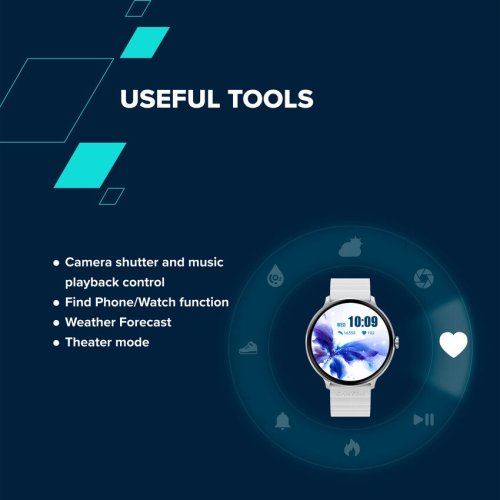 Užívajte si praktické funkcie, ako je ovládanie fotoaparátu a prehrávanie hudby, rôzne ďalšie nastavenia, funkcie Nájsť telefón/hodinky a budík. Majte prehľad o počasí vďaka funkcii Predpoveď počasia, ktorá vám zaistí, že budete vždy pripravení na akékoľvek podmienky. Vo chvíľach, kedy potrebujete zostať diskrétne, prepnite na režim Divadlo, aby ste mali stlmenú obrazovku a vypnuté vibrácie. Potrebujete rýchlu prestávku? Ponorte sa do našich pútavých hier a užite si zábavu na cestách.