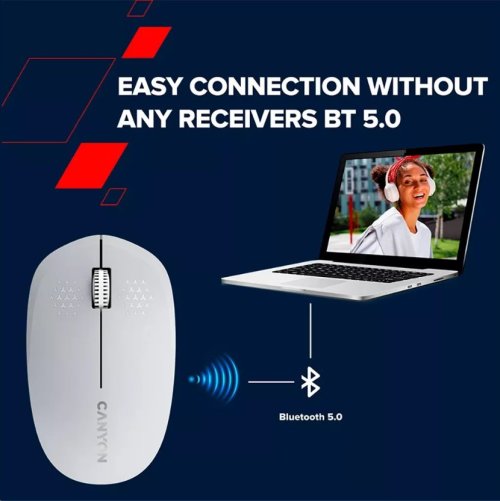 Myš MW-04 od spoločnosti Canyon je univerzálnym riešením na váš pracovný stôl. Vďaka Bluetooth 5.0 je možné ju bez problémov pripojiť k najrôznejším zariadeniam. Optický snímač s rozlíšením 1200 DPI je kombinovaný s inteligentným systémom úspory energie, ktorý zaistí dlhšiu výdrž AA batérie. K dispozícii sú 3 minimalistické tlačidlá, ktoré majú životnosť až 3 milióny kliknutí. Canyon MW-04 je ľahká a kompaktná myš, takže nezaberie veľa miesta a neváži skoro nič. Ak ste ľaváci, nemusíte sa báť: táto myš je symetrická a teda vhodná pre pravákov aj ľavákov.