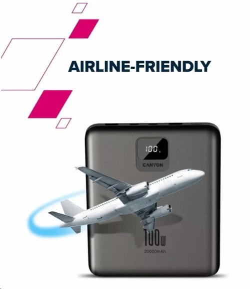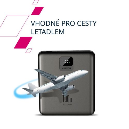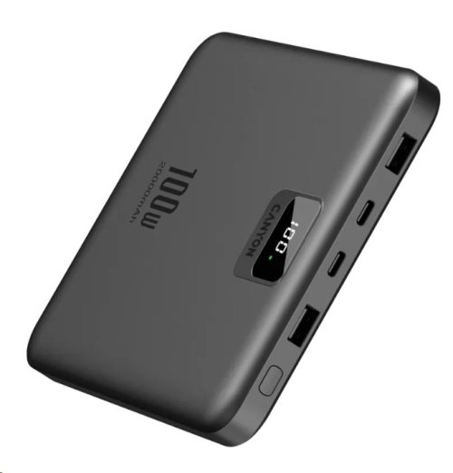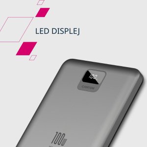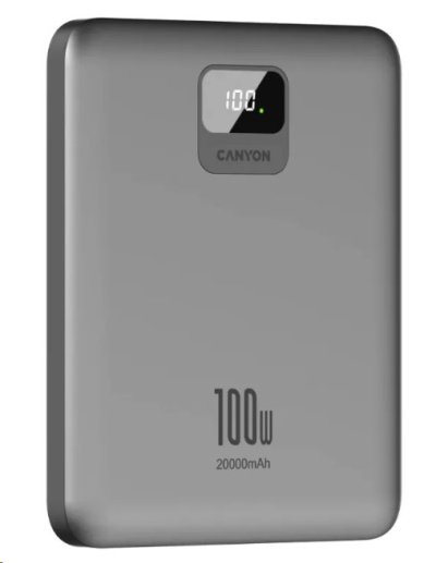 Powerbanka Canyon PB-2008 má kapacitu 20 000 mAh a podporuje rýchle nabíjanie Power Delivery až 100 W, ideálny pre notebooky, telefóny aj tablety.