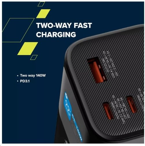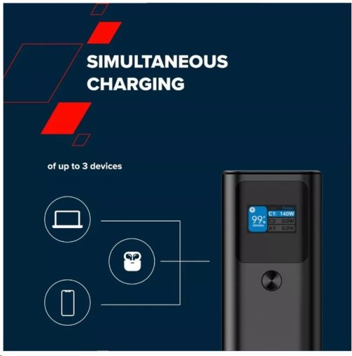 Oba porty Type-C môžu rýchlo nabíjať vaše zariadenie a zaisťujú rýchle nabíjanie samotnej powerbanky. To všetko pri maximálnej rýchlosti 140 W podľa štandardov protokolu Power Delivery 3.1. To je viac ako dostatočné pre väčšinu zariadení vrátane špičkových notebookov.
