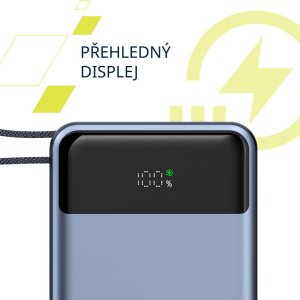 Prehľadný displej powerbanky umožňuje ľahko sledovať zostávajúcu energiu, úroveň výstupu a stav nabíjania.