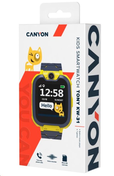 Tony KW-31 od Canyonu sú malý a jednoduchý GSM telefón navrhnutý ako hodinky. Vložte 2G GSM SIM kartu do hodiniek a vaše dieťa bude schopné volať a zdvíhať hovory pomocou tohto malého prístroja. štúdiu alebo vo svojom voľnom čase. Slot na MicroSD kartu umožní pomocou reproduktora prehrávať hudbu alebo audioknihy. hier, rovnako ako kalkulačka, budík, kalendár a stopky, budú užitočnými doplnkami. Jednoduchá a pohodlná vychytávka, ktorú nie je ľahké rozbiť alebo stratiť!