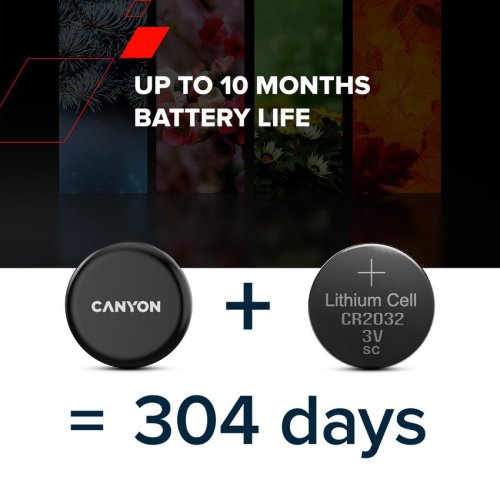 Vymeniteľná batéria CR2032 zvládne až 10 mesiacov nepretržitej prevádzky. Výmena je jednoduchá - stačí pootočiť krytom.