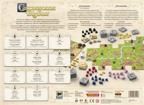 Špeciálne darčekové balenie základnej hry Carcassonne spoločne s jedenástimi rozšíreniami! Vo veľkej krabici nájdu všetci fanúšikovia hry Carcassonne legendárnu základnú hru, dve veľké rozšírenia a deväť malých. Obsah balenia: