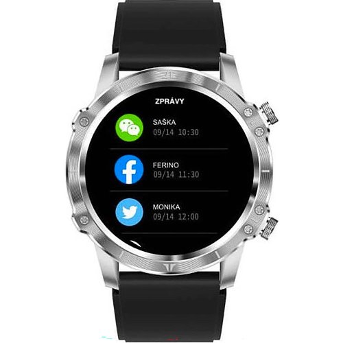 Telefonovanie Z hodiniek cez spárovaný telefón (v dosahu Bluetooth) Notifikácia Hovor SMS Socialné siete Možnosť telefonovať Notifikácia Krokomer Merač tepu Výdrž batérie (počet dní) 5 Farba remienka Čierna Materiál remienka Silikón