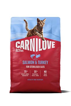Táto energeticky vyvážená receptúra s čerstvým lososom a morkou rešpektuje prirodzené výživové potreby sterilizovaných mačiek. Vysoko stráviteľné živočíšne bielkoviny podporujú vitalitu a pomáhajú udržiavať štíhlu svalovú hmotu po sterilizácii. Losos je prirodzeným zdrojom omega-3 mastných kyselín, ktoré pomáhajú udržiavať zdravú kožu a hladkú srsť, zatiaľ čo pridaná vláknina a prebiotiká podporujú pocit sýtosti a zdravé trávenie. Brusnice a rakytník rešetliakový, bohaté na antioxidanty, podporujú zdravie močových ciest a prispievajú k prirodzenej odolnosti. Kompletné krmivo pre sterilizované mačky .