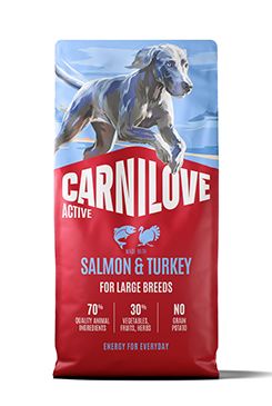 Táto receptúra je ideálna pre dospelých psov veľkých plemien , obsahuje čerstvé mäso z lososa a morčaciu bielkovinu. Tieto vysoko stráviteľné bielkoviny dodávajú esenciálne aminokyseliny a biologicky dostupné živiny, ktoré podporujú špičkovú fyzickú kondíciu, dlhodobú vitalitu a duševnú pohodu. Tekvica, jablká a strukoviny napomáhajú zdravému tráveniu, zatiaľ čo čučoriedky, zázvor a rakytník rešetliakový poskytujú antioxidanty, ktoré posilňujú imunitu a odolnosť. Lososový olej a ľanové semienko udržujú kožu pružnú a srsť hustú a lesklú, chondroprotektíva pomáhajú udržiavať zdravé kĺby. Kompletné krmivo pre dospelé psy veľkých plemien.