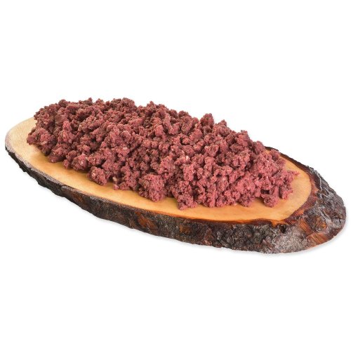 85% mäso a orgány (59% moriak, 26% zverina), 9% vývar, 4% list jahôd, 1% minerály, 1% ľanový olej.