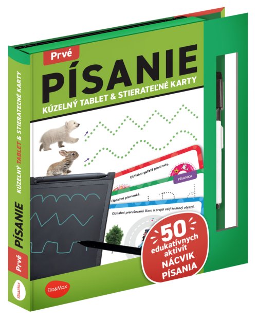 Set 25 stierateľných kartičiek obsahujúcich 50 edukatívnych aktivít, priložená fixka s hubkou a kúzelný tablet – to je pre rodičov ten najrafinovanejší a pre deti ten najzábavnejší spôsob, ako spoločne vykročiť na cestu za poznávaním písmeniek a prvého písania! Práca s výukovými kartičkami a tabletom rozvíja pozornosť a koncentráciu, jemnú motoriku, slovnú zásobu a jazykové schopnosti, predstavivosť a fantáziu av neposlednom rade všeobecné znalosti!