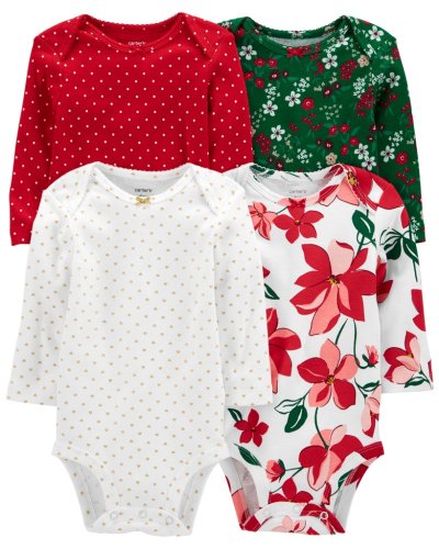CARTER'S Body dl. rukáv Red Green dievča 4ks NB /vel.56