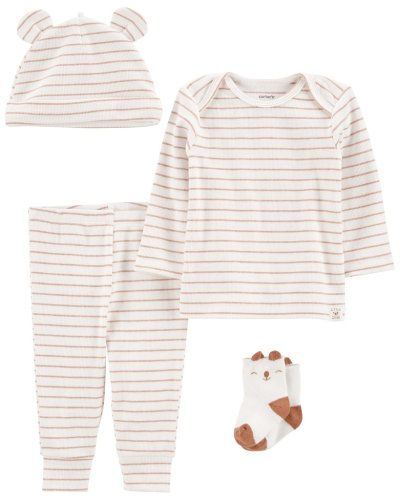 Všetky modely značky Carter's sú vyrobené zo super mäkkej bavlny a množstvom lásky. Set 4.dielny je veľmi vhodný aj do výbavičky dieťatka. Nemusíte premýšľať nad kombináciou. Jednoducho stačí len obliecť. Všetky výrobky sú navrhnuté tak, aby boli veľmi pohodlné na nosenie av trendy farbe ch.Sety sú veľmi obľúbené u mamičiek.