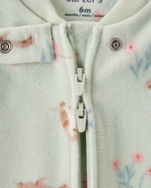 CARTER'S Overal na zips fleece Sleep & Play green Owl dievča NB/vel.56