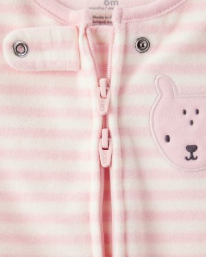 CARTER'S Overal na zips fleece Sleep & Play ružový Deer pocket dievča 9m/vel.74