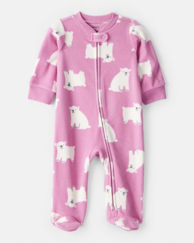 CARTER'S Overal na zips fleece Sleep & Play ružový Polar bear dievča NB/vel.56