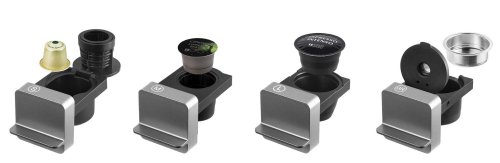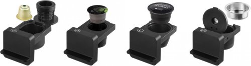 Tri veľkosti priehradky na kapsule: S - veľkosť Nespresso kapsule M - veľkosť Tchibo kapsule L - veľkosť NESCAFÉ Dolce Gusto kapsule