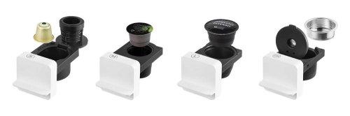 Tri veľkosti priehradky na kapsule: S - veľkosť Nespresso kapsule M - veľkosť Tchibo kapsule L - veľkosť NESCAFÉ Dolce Gusto kapsule