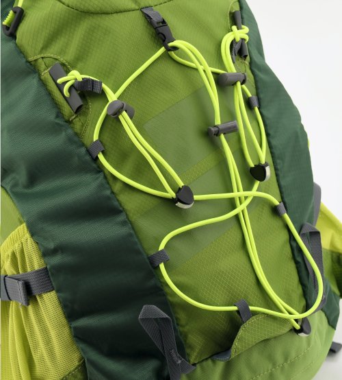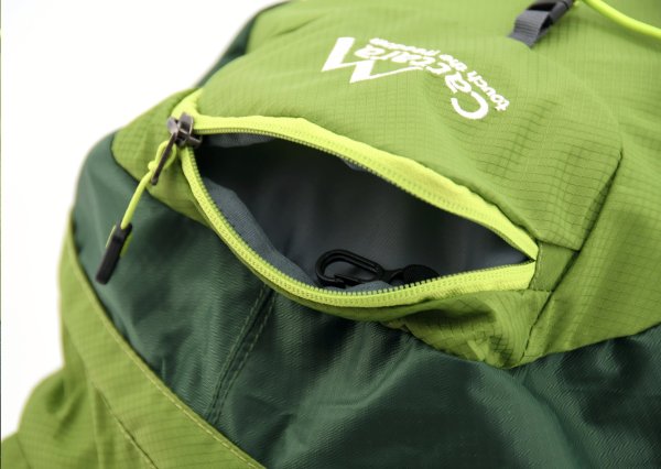 Vrchná časť je opatrená pláštenkou, ktorá poskytuje dôslednú ochranu pred dažďom. Spodná časť je opatrená opaskom so zapínacími vreckami pre drobnosti. Objemné hlavné vrecko je opatrené aj vnútorným vreckom. Čelná strana je opatrená jedným menším vreckom na vrchnej časti batohu a šnurovacím systémom, na stiahnutie batohu a zamedzenie pohybu materiálu vo vnútri, vhodným aj na prichytenie cyklistickej prilby. Na bokoch sú potom dve sťahovateľné sieťové vrecká. Opasok je tiež opatrený vreckami so zapínaním na zips.