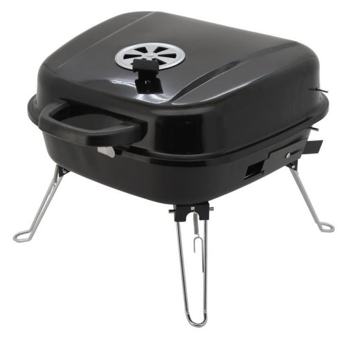 Konštrukcia je vyrobená z kvalitného smaltovaného oceľového plechu čiernej farby. Stabilitu zaisťujú štyri kovové rozkladacie nohy. Rozmery grilu 45 x 30 x 40 cm.