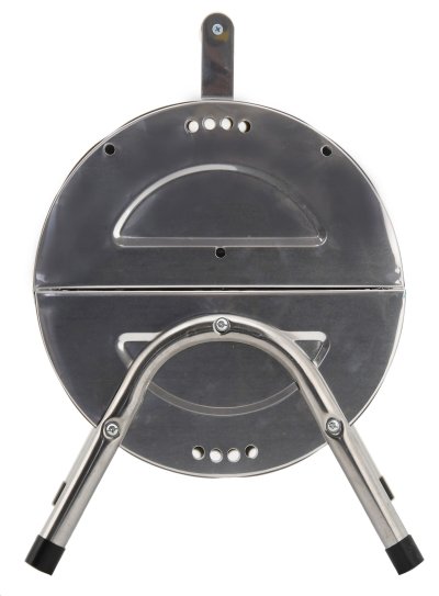 Konštrukcia je vyrobená z kvalitného nerezového plechu s lešteným povrchom. Drevené madlo zaistí pohodlné prenášanie zariadenia. Stabilitu zaisťujú štyri kovové nohy, priskrutkované k telu grilu.