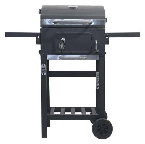 Ovládacie kovové prvky a rukoväte majú dostatočné rozmery pre pohodlný úchop a zaisťujú ľahkú manipuláciu. Obojstranná oceľová regulácia ventilácie perfektne lícuje s konštrukciou. Vyklápacie veko je vo vrchnej časti vybavené teplomerom pre stálu kontrolu teplôt vo vnútri grilu.