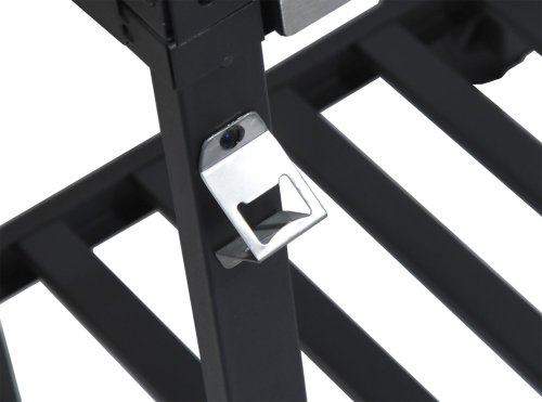 Vysoko stabilná konštrukcia z precízne opracovanej ocele je opatrená odolnou, hrubo čiernou farbou. Konštrukcia je doplnená 2x kolieskami uľahčujúcimi mobilitu grilu. Rám v spodnej časti slúži na ďalšie zvýšenie stability a rovnako ako odkladací priestor. Bočné strany sú doplnené sklápacími poličkami na odkladanie rozličného vybavenia na grilovanie, alebo samotných pokrmov.