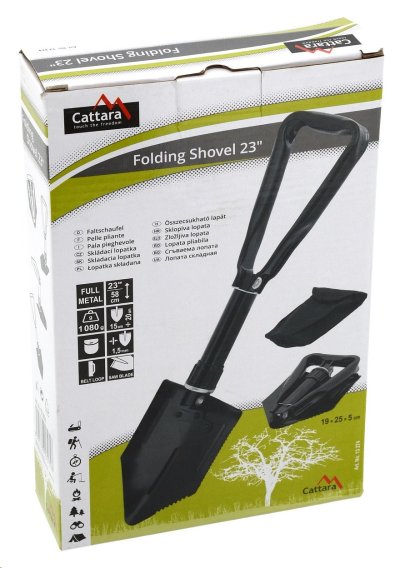 Lopatka má rozmery v zloženom stave 15 x 24 cm a predávaná je spolu s odolným textilným puzdrom čiernej farby, ktoré je možné pripevniť za opasok.