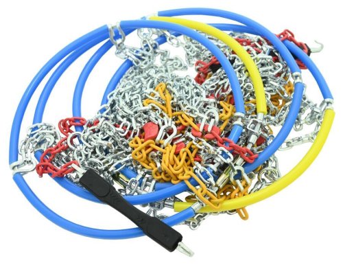 Praktické balenie obsahuje pár reťazí s jednoduchou a rýchlou montážou, návod a darček v podobe trojstrannej škrabky na okná.